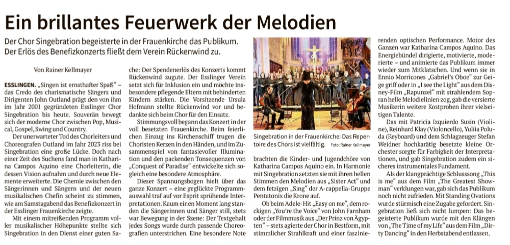 Durch euren Konzertbesuch könnt auch ihr schenken und anderen eine Freude bereiten: Der Erlös aus euren freiwilligen Spenden kommt in diesem Jahr dem Verein „Rückenwind e.V. Esslingen – Pflegende Mütter behinderter Kinder stärken!“ zugute.